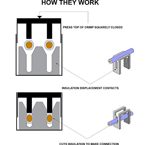 Connessione corretta: una volta che il coperchio è chiuso quadratamente, viene effettuata una connessione. Se si decide di utilizzare pinze standard, è necessario lavorare intorno alla parte superiore del connettore assicurando che sia chiusa in modo uniforme. Un coperchio angolato impedisce anche il contatto del filo