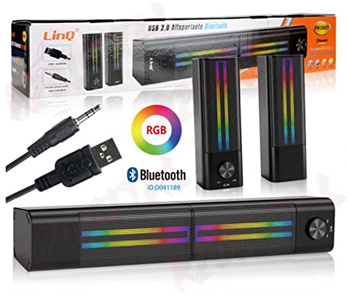 2 in 1 SOUNDBAR o MINI CASSE STEREO 10W BLUETOOTH USB 3,5 LED RGB AUTO ALIMENTATA BARRA SOUND ALTOPARLANTE per Televisore, Computer, Notebook, Tablet, Monitor