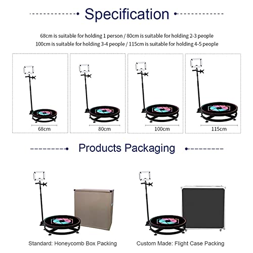 【360-Grad-Fotokabinenmaschine für Partys】 4 Selfie-Halter unterstützen mehrere Geräte wie iPad, Kamera, Smartphone … Menschen stehen auf der 360-Grad-Fotokabinenkarnevalsmaschine, die 360-Kamerakabine kann Ihre wundervollen Momente in alle Richtungen aufnehmen. Sehr geeignet für Familienfeiern, Hochzeiten, Partys usw.