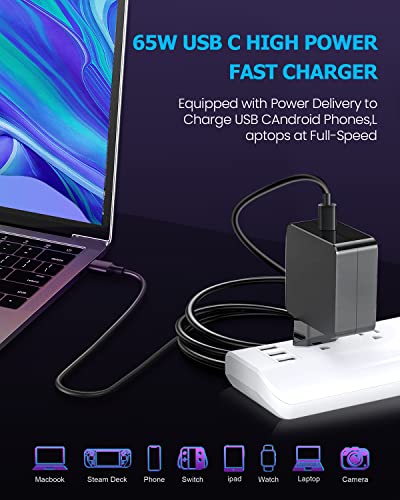 ⚡Caricabatterie 65W TYPE-C Tensione d’ingresso: 100-240V 50-60Hz 1.8A Sortie: 5V-3A, 9V-3A, 12V-3A, 15V-3A, 18V-3A, 20V-3,25A; Lunghezza del cavo di ricarica USB C: 2M, Certificato CE/FCC/RoHS; La ricarica supporta una modalità di ricarica rapida con una potenza massima di 65W, permettendo ai dispositivi compatibili di caricarsi più velocemente in poco tempo. Potete usare questo adattatore da 65W USB C PD invece di 61W / 45W / 30W come ottimo ricaricatore di riserva.