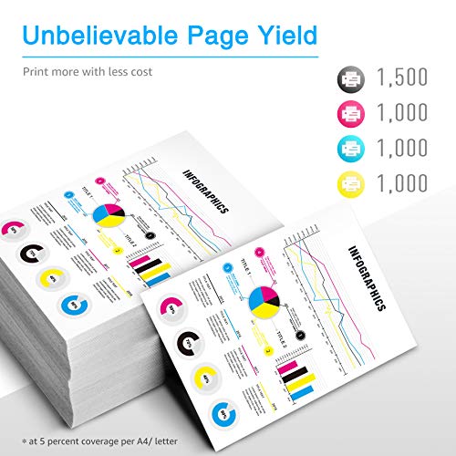 Rendimento della pagina: 1500 pagine per nero cartuccia, 1000 pagine per ciano, magenta, giallo cartuccia (sulla base della copertura del 5 Percentuale)