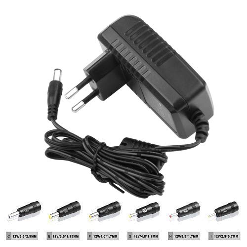 Alimentatore universale stabilizzato con spina Euro, con 6 adattatore 5,5 mm x 2,5 mm/4,0 mm X 1,7 mm/4,8 mm x 1,7 mm/3,5 mm x 1,35 mm/2,5 mm x 0,7 mm/5,5 mm x 1,7 mm