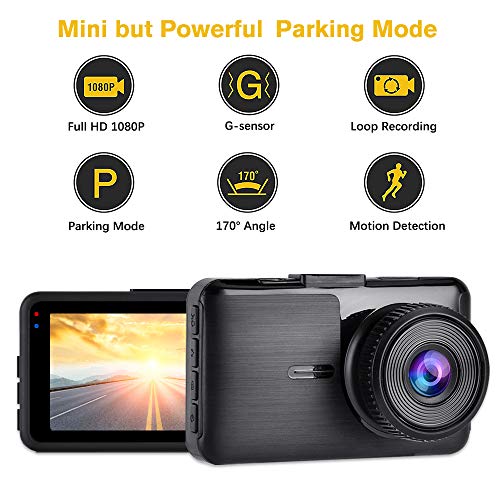 Aigoss Dash Cam FHD 1080P Video Telecamera per Auto, Grandangolare 170° con 3″ Schermo LCD, Supporto G-Sensor, Registrazione in Loop, Monitor di Parcheggio