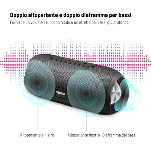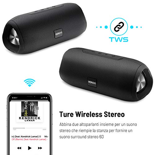 Altoparlante wireless Bluetooth portatile Veroyi, altoparlante TWS con Bluetooth 5.0, bassi Hi-Fi ottimizzati per feste, barbecue, casa, viaggi