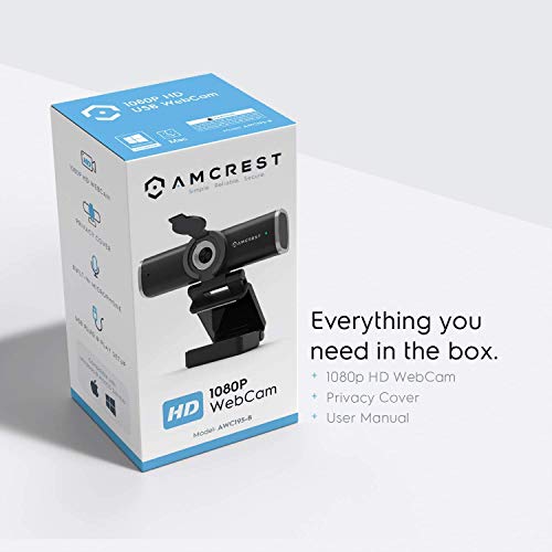 Amcrest Webcam 1080P con Microfono e Copertura per la Privacy, Webcam Webcam USB, Streaming HD per PC e Laptop con Microfono, Obiettivo grandangolare e Ampio sensore per Bassa luminosità (AWC195-B)