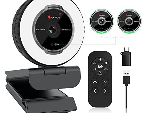 Angetube Streaming Webcam con microfono – 1080P 60FPS USB WebCam con luce ad anello e telecomando – HD Web Camera con 5X Digital Zoom Built-in Privacy Cover per: PC | Computer | Laptop | Mac | Desktop