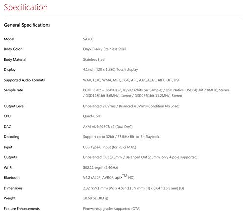 Astell&Kern SA700 – Lettore audio portatile 128 GB 128GB Acciaio inox