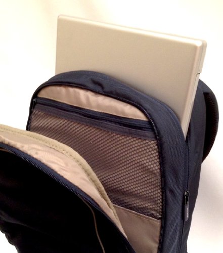 Adatto a computer portatili fino a 15,6″. Resistente nylon ripstop blu e nero. Tasche esterne per accessori, acqua, ecc.