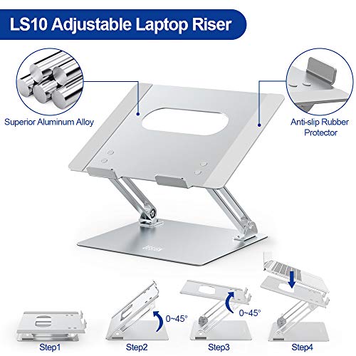 Besign LS10 – Supporto per computer portatile in alluminio, ergonomico, regolabile, compatibile con MacBook Air Pro, Dell, HP, Lenovo More 10-15.6″ laptop, colore: Argento