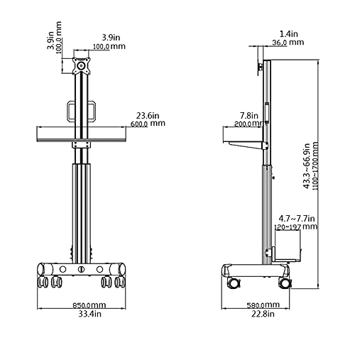 □ La colonna di supporto può essere regolata su e giù (39,3-66,9 pollici), che può essere regolata ad un’altezza adatta in base a diversi ambienti e all’altezza della distanza di visualizzazione, in modo da poter guardare comodamente