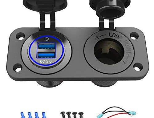Cigarette Lighter Socket Splitter, QC 3.0 12V Dual USB Charger Power Adapter Outlet with 4.2A(2.1A&2.1A) Dual USB Ports And LED Display for Car Boat Marine Motorcycle Scooter RV DIY Kit (Black)