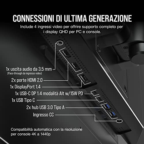 Corsair XENEON 32QHD165 Monitor da Gioco IPS QHD (2560 x1440) da 32 pollici (FreeSync Premium Adaptive Sync, frequenza di aggiornamento 165 Hz, Display HDR 400, USB 3.1 Type-C, DisplayPort) Nero