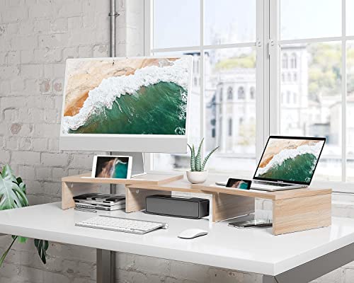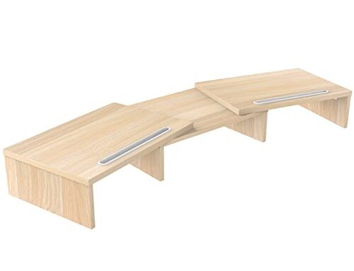 FITUEYES Supporto Monitor Supporto per Monitor in Legno con 2 Supporti per Telefoni, Lunghezza e Angoli Regolabili per 2 Monitor 79-111,2 x 27 x 10,5cm (Giallo) DT111106WO