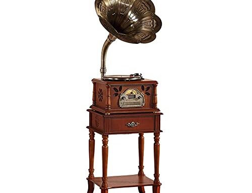 Giradischi Giradischi retrò all in One Fonografo Vintage Grammofono nostalgico con Corno in Rame, Controllo del Sistema di Altoparlanti Integrato 33/45/78, Vinile, CD, Bluetooth, Radio, regi