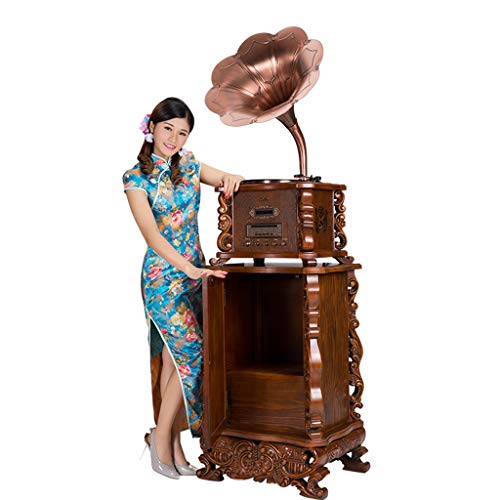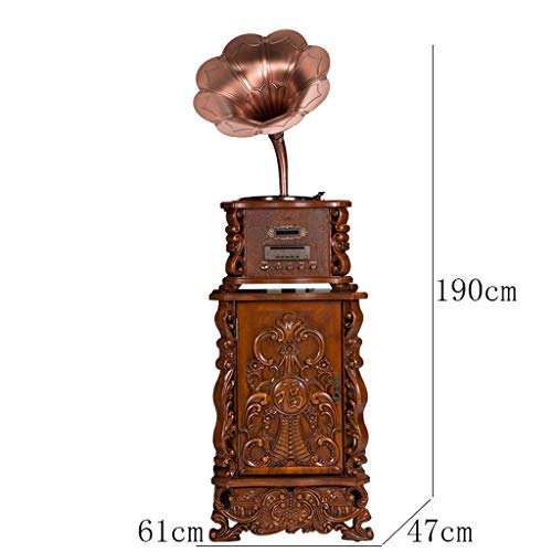 Styling di lusso: splendido design in stile arte retrò europea, base in rovere di alta qualità, intagliato a mano e comodo pannello frontale con controlli di riproduzione, tromba in rame puro, placcatura antiossidante sulla superficie, raffinato ed elegante