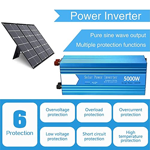 H-BEI Inverter a Onda sinusoidale Pura da 5000 W, convertitore di Potenza di Picco da 10000 W, da 12 V/24 V/48 V CC a 110 V 220 V CA, con Doppie Prese CA, per Sistema Solare off-Grid per Camper e