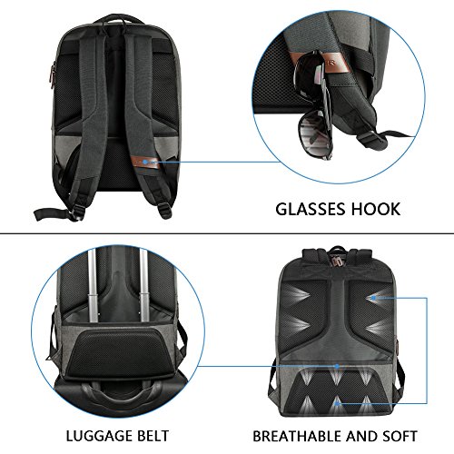 Materiale di alta qualità: Lo zaino per laptop è realizzato in un buon tessuto ecologico con una nuova funzione idrorepellente, che è abbastanza resistente. Dimensioni: 17.7″x12.2″x7.5″.