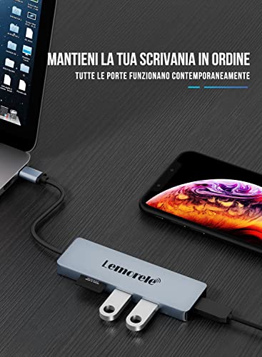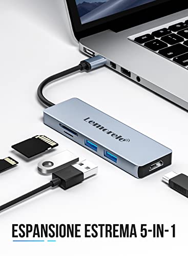 Lemorele Hub USB C HDMI 4K – 6 in 1, Spazio Alluminio Adattatore USB C Hub con 2 USB 3.0, SD/TF, Adattatore MacBook Pro/Air M1, iPad Pro/Air M1, Windows, Switch, Chromecast, Dell, Cellulare e altro