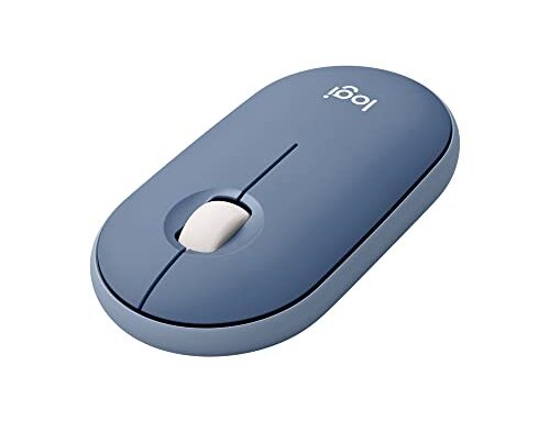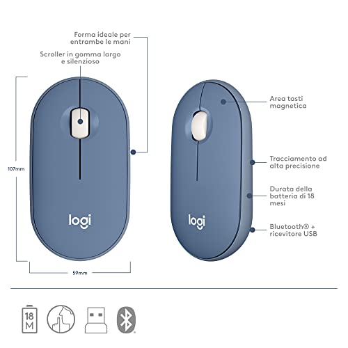 Logitech Pebble Mouse Wireless con Bluetooth o ricevitore 2,4 GHz, Silenzioso, Sottile con Clic Silenziosi Per Laptop, Notebook, iPad, PC e Mac – Mirtillo