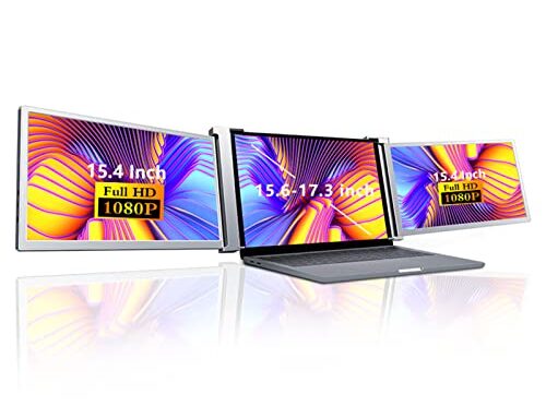 Monitor per Laptop a Triplo Schermo, Monitor Portatile da 15,4 per Laptop 1080P FHD IPS, Estensore Schermo per Laptop per Laptop da 15,6 a 17,3 Pollici