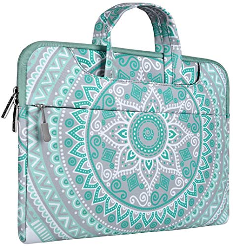 MOSISO Laptop Borsa a Tracolla Compatibile con 13-13,3 Pollici MacBook PRO,MacBook Air,Computer Notebook,Canvas Mandala Pattern Custodia,Verde Menta e Blu