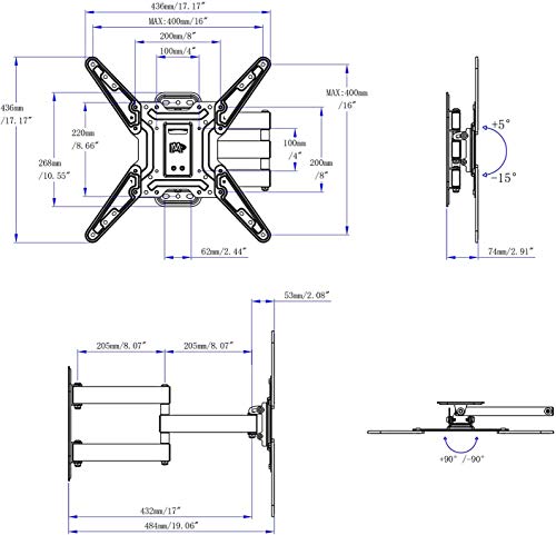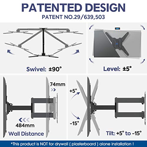 ☑️MIGLIORA LA TUA ESPERIENZA DI VISUALIZZAZIONE- Inclinare il TV verso l’alto di 5° e verso il basso di 15° per ridurre l’abbagliamento, girare il TV verso sinistra o verso destra in base a dove ti siedi (+/-90° alla larghezza massima dello schermo di 60 cm). Può essere prolungato fino a 484 mm e accorciato fino a 74 mm, Rendi flessibile la tua TV per muoverti. La regolazione post-installazione di +/-5° consente un livellamento perfetto del televisore.