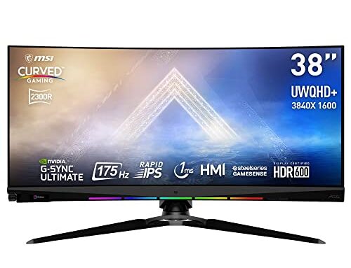 MSI Optix MEG381CQR Plus Monitor Gaming 37.5″ Curvo, 21:9 WQHD (3840×1600), IPS, 180Hz, 1ms (ULMB), 2300R, Nvidia G-Sync e AMD Freesync, HDR600, VESA 100×100, MSI Center e SteelSeries GameSense