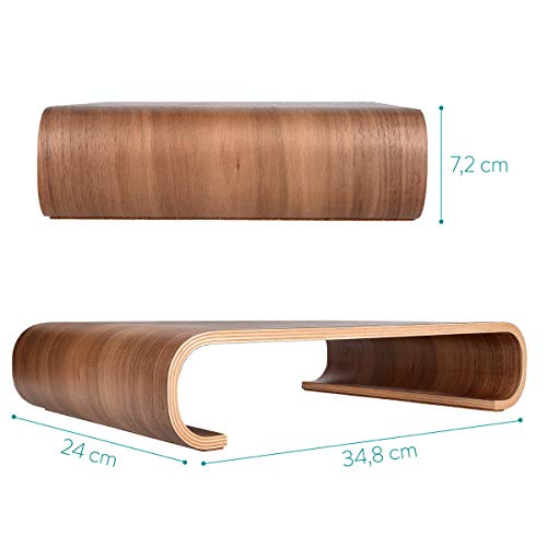 Navaris Supporto monitor da tavolo in legno – Stand per schermo PC computer TV – Base universale da scrivania – rialzo per notebook portatile – noce