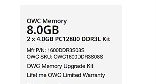 OWC 8 GB (2×4 GB) PC3-12800 DDR3L 1600 MHz SO-DIMM 204 Pin CL11 Kit di aggiornamento della Memoria per iMac, Mac Mini e MacBook PRO, (OWC1600DDR3S08S)