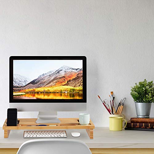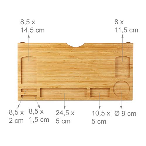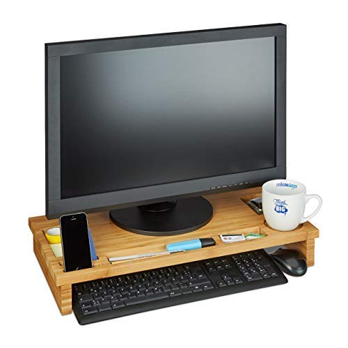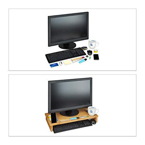 Relaxdays Naturale Supporto per Monitor in bambù, Rialzo per PC, Tavolino con Scomparti, HLP 9 x 60 x 30cm, Legno, 9 x 60 x 30 cm