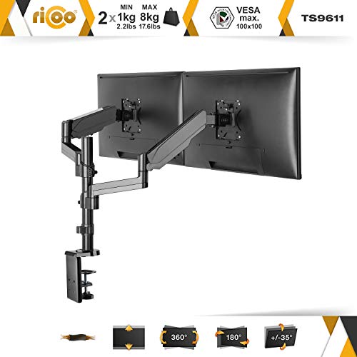 RICOO TS9611, Supporto Monitor scrivania, Girevole, Inclinabile, Schermi 17-32″ (43-81cm), Braccio Schermo PC, Staffa Universale, VESA 75×75 100×100