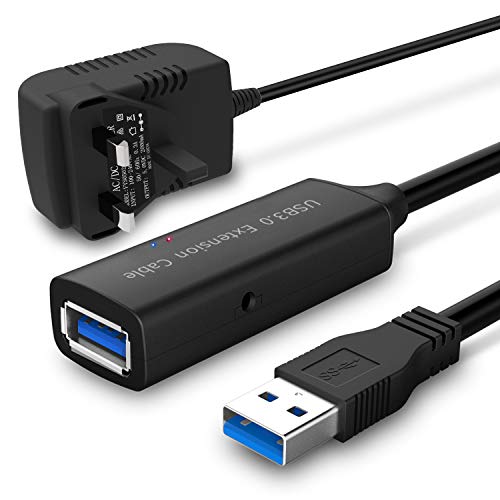 RSHTECH – Cavo di prolunga USB 3.0 da maschio a femmina, con amplificatore di segnale Chiclets e alimentatore 5V/2A per stampante, computer, scanner, monitor, WiFi, antenna, fotocamera, 10 metri