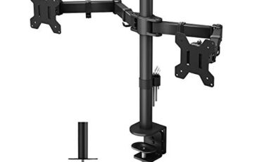 Robusto supporto da tavolo in acciaio a doppio braccio: due schermi sono installati uno accanto all'altro per un facile spazio in ufficio. Può ospitare due TV o monitor da 13...