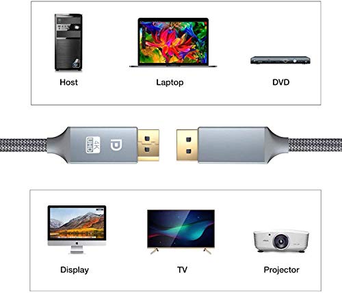 Stabilità di trasmissione del cavo DP 4k]: lo stampaggio in una tecnologia previene efficacemente le crepe. Schermatura multipla, connettori placcati in oro 24 K, rame stagnato 28 AWG, plug & play, trasmissione dati affidabile senza interferenze, fornisce prestazioni del cavo superiori e connettività affidabile.