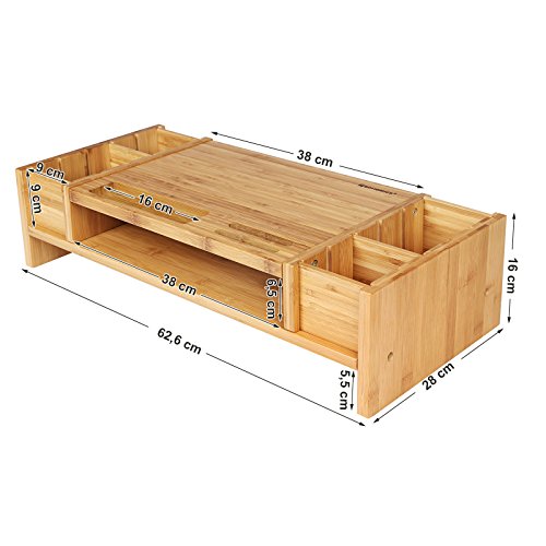 SONGMICS Supporto per Monitor in bambù, Portaoggetti Ergonomico da Scrivania per Computer, Laptop e Cancelleria LLD213