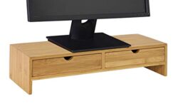Materiale: legno di bambù, chiaro verniciato,Peso:2.5 KG, Carico massimo: 15 kgMisura dello ripiano per il Monitor: L47*P18 cm,Spazio sottostante per conservare tastiera: L45*P18 cmDotato di due cassetti estraibili per la...