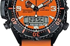 ABMESSUNGEN: Gehäusedurchmesser: 42 mm, Gehäusehöhe: 15,4 mm | ARMBAND: Oranges, hochwertiges Armband aus Kautschuk mit aufgedruckter Deko-Tabelle, Bandanstoß: 22 mm | BELEUCHTUNG: CHRIS BENZ Safety-Lighting-System auf Zeigern und IndexenDISPLAY: Helles,...