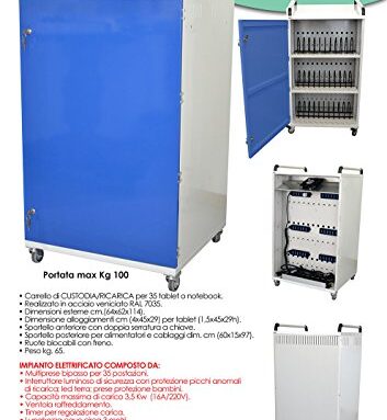 Tecnidea Carrello di Sicurezza per la Custodia e Ricarica di pc Notebook o Tablet da 35 postazioni elettrificate PC35E