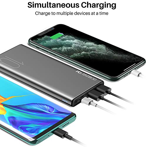TOZO WB1 Powerbank 10000mAh Caricabatterie Portatile 18W PD + Quick Charge 3.0 Ultra Compatta con 2 USB Porte, USB-C ingressi e uscite, Ricarica Rapida per iPhone, iPad, Samsung Android, ECC. Grigio