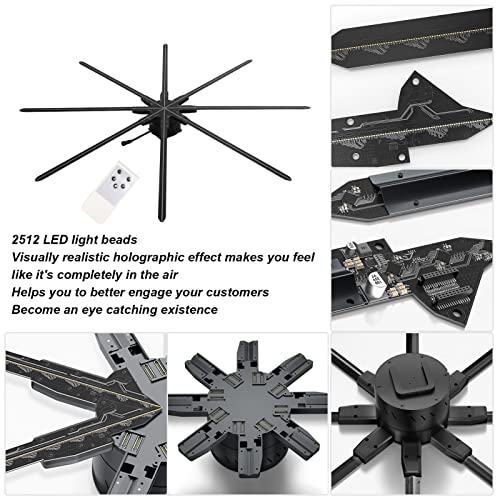 【ENORME PROIEZIONE OLOGRAFICA DI ALTISSIMA CLASSE】: la ventola olografica 3D è composta da 2512 sfere luminose a LED HD professionali. Lettore pubblicitario 3D con una velocità di 350 giri/min, angolo di visione di 170°, offre una risoluzione di 2048×2512, 180 cm/70,9 pollici di grandi dimensioni, una visione chiara dell’ambiente video o immagine anche in condizioni di illuminazione ambientale elevata, supporta video, animazione e visualizzazione di immagini comuni.