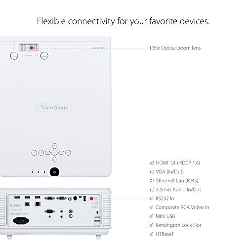 Viewsonic LS900WU – Proiettore laser DLP (WUXGA, 6.000 ANSI Lumen, 3 HDMI, 2 altoparlanti da 5 Watt, zoom ottico 1,65x, funzionamento 24/7), colore: Bianco